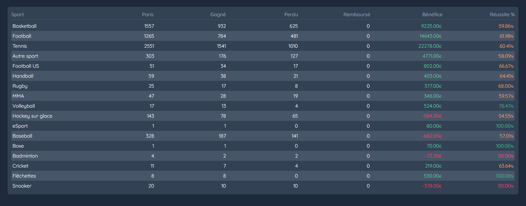 Analyzer par sport : taux de réussite, bénéfice et stats (DER. MAJ : 2023)
